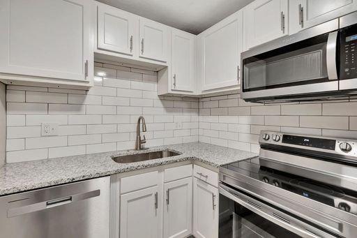 The apartment includes an open living area with modern updates and abundant natural light. The full kitchen comes equipped with a refrigerator, stove, range, dishwasher, and microwave, offering both style and functionality. Residents benefit from off-street parking, on-site coin laundry, a full kitchen with dishwasher and range, and 24-hour emergency maintenance for added peace of mind. Trash service is included.